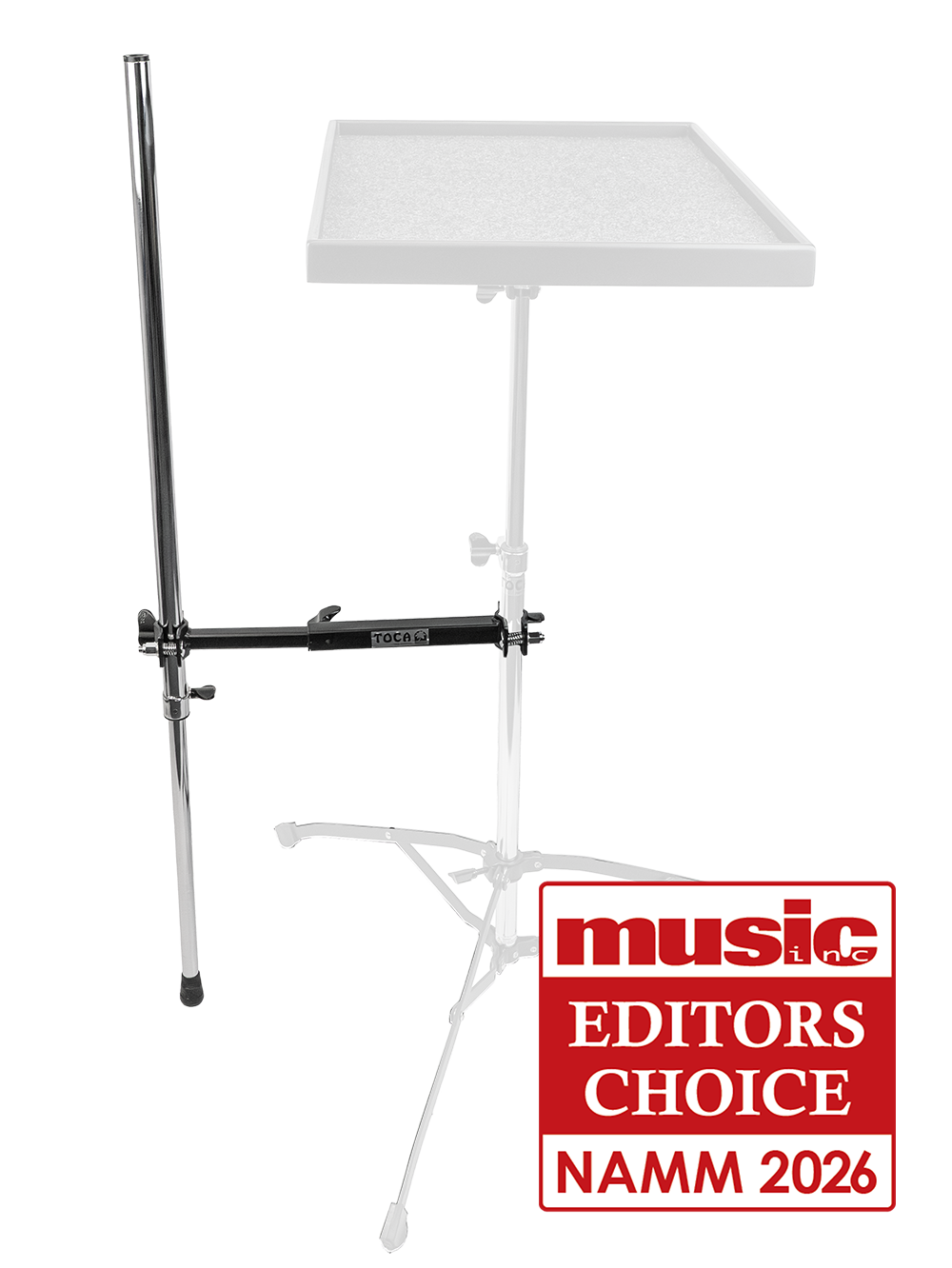 The Toca Percussion Tray Accessory Mount provides a robust and elegant solution to one of the most common frustrations in stage setup. For years, percussionists have been forced to clutter their performance area with bulky, external cymbal stands just to mount basic accessories near their percussion tables. By eliminating the need for extra floor stands, the PTAM saves precious stage real estate and streamlines your workspace, allowing you to keep essential instruments within easy reach without the complexity of traditional mounting hardware.