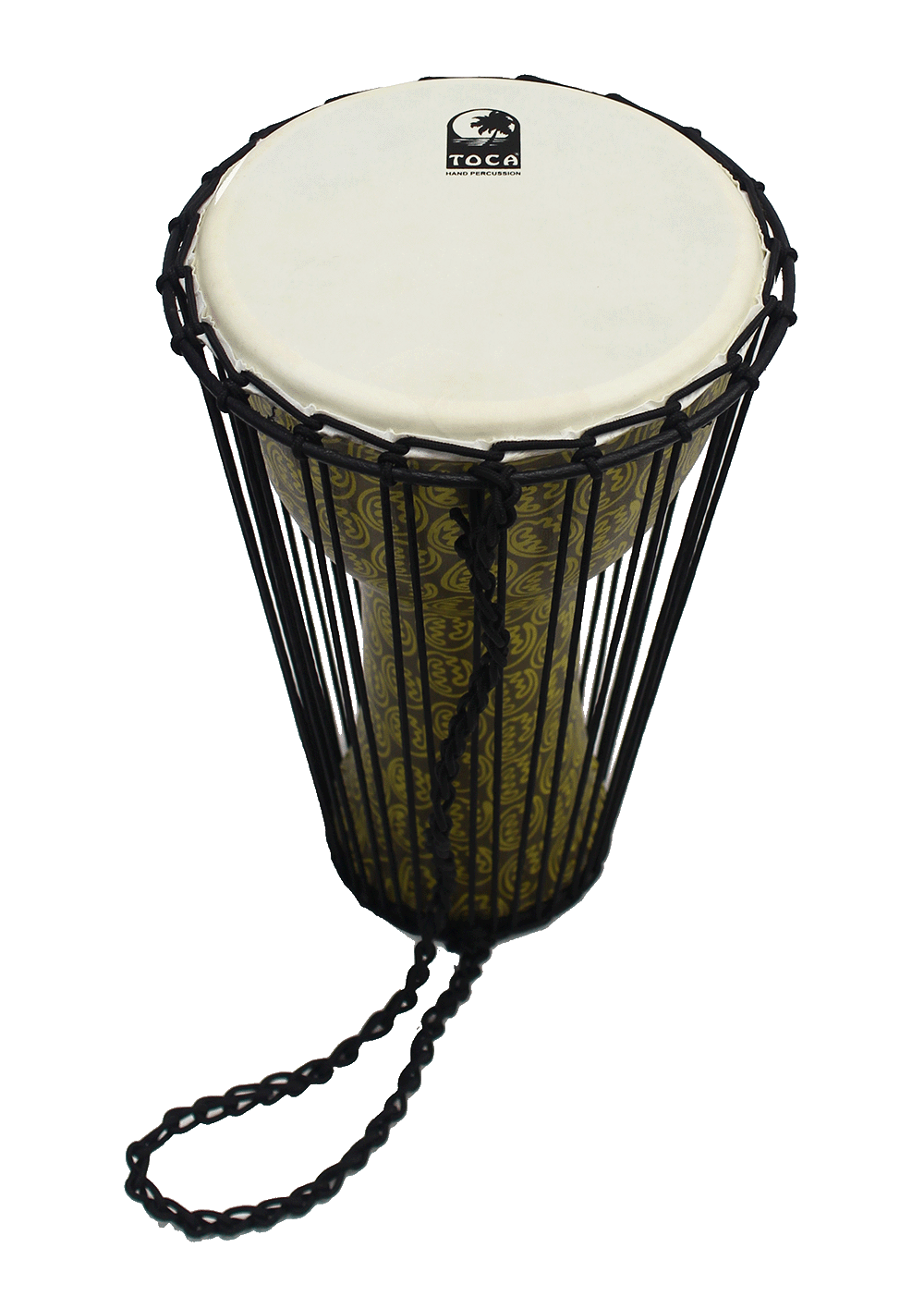 • Full talking-drum tension cord system on a djembe-shaped shell