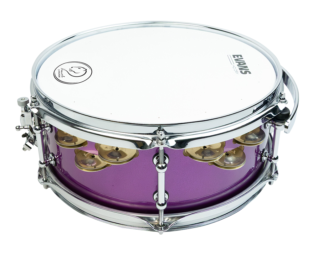 "The inspiration started with my love for the original Toca Jingle Snare, but I wanted an instrument that looked and felt like a true drum set drum. The Hot Purple finish is incredibly meaningful to me, serving as a memory of my time with Prince, while the German silver jingles give it a sound that is entirely my own." — Hannah Welton